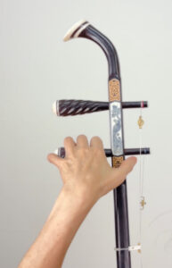 1.二胡もオーケストラと同様に、まず外弦をA(ラ)の音に合わせます。弓は外弦だけ弾きます。